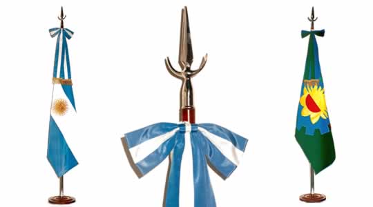 En banderas de toda nacionalidad, tipo y tamaño. De exterior o de ceremonia. Con los mejores bordados y terminación del mercado y con gran calidad en sus accesorios. Publicitarias y promocionales, deportivas, náuticas, organizaciones, provincias, de escritorio, señalización, banners, etc. Mástiles, astas, bases, estandartes, escarapelas, cintas, moños, gallardetes y distintivos. En venta y alquiler.
